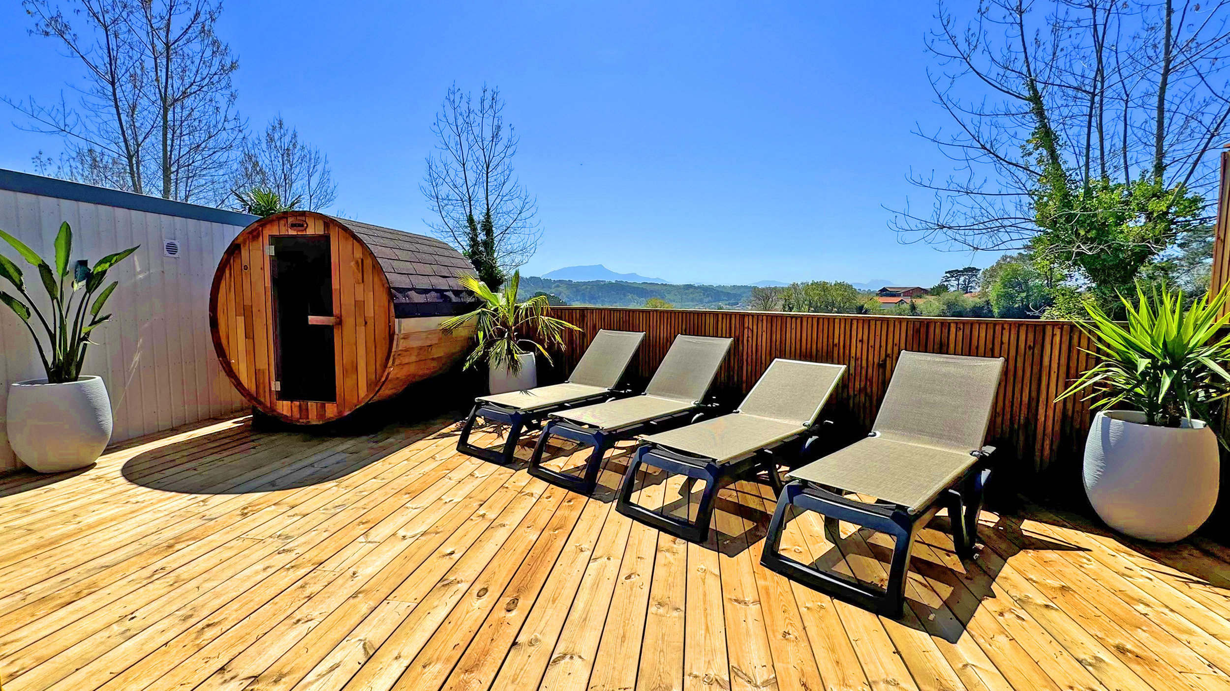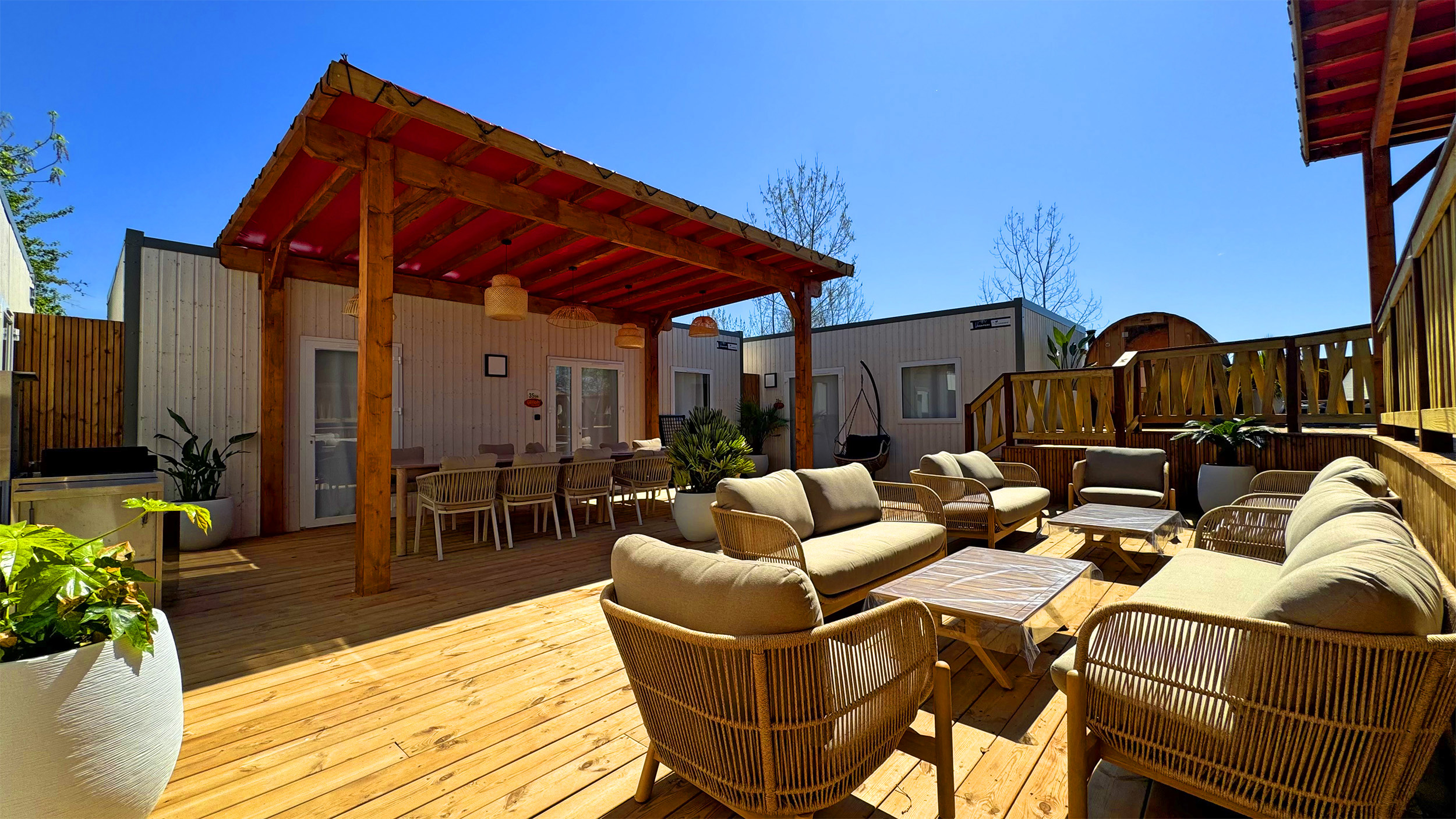3 mobil-homes en forma de U + gran terraza privada compartida.